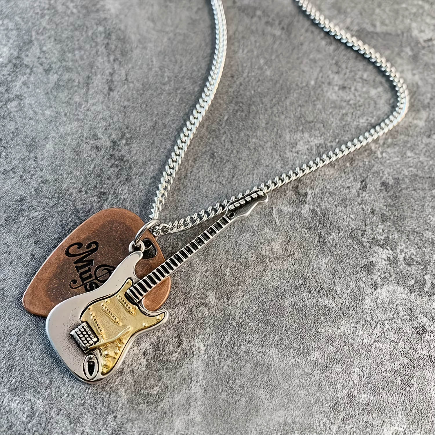 Show off your love for music with this playful Vintage Guitar & Pick Pendant Necklace.